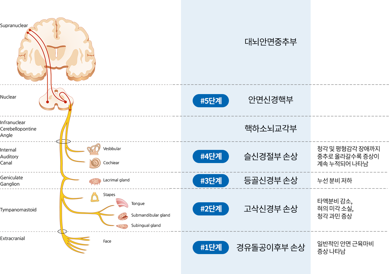 경우에 따라 환측 안면근육의 구축이나 경련이 동반될 수 있습니다.