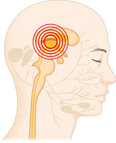 ![]() 마비된 쪽 이마에 주름이 잡히지 않으며, 눈이 감기지 않고 얼굴에만 마비 증상이 나타납니다. 또한, 귀와 귀 뒤쪽에 통증이 느껴질 수 있습니다. |